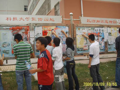 为响应公司关于开展校园文明活动月的号召,英国365集团05级8班于10月9日上午在校园中举行了一次“行文明之举,树礼仪之风”——除去身边乱贴乱画污染的活动。