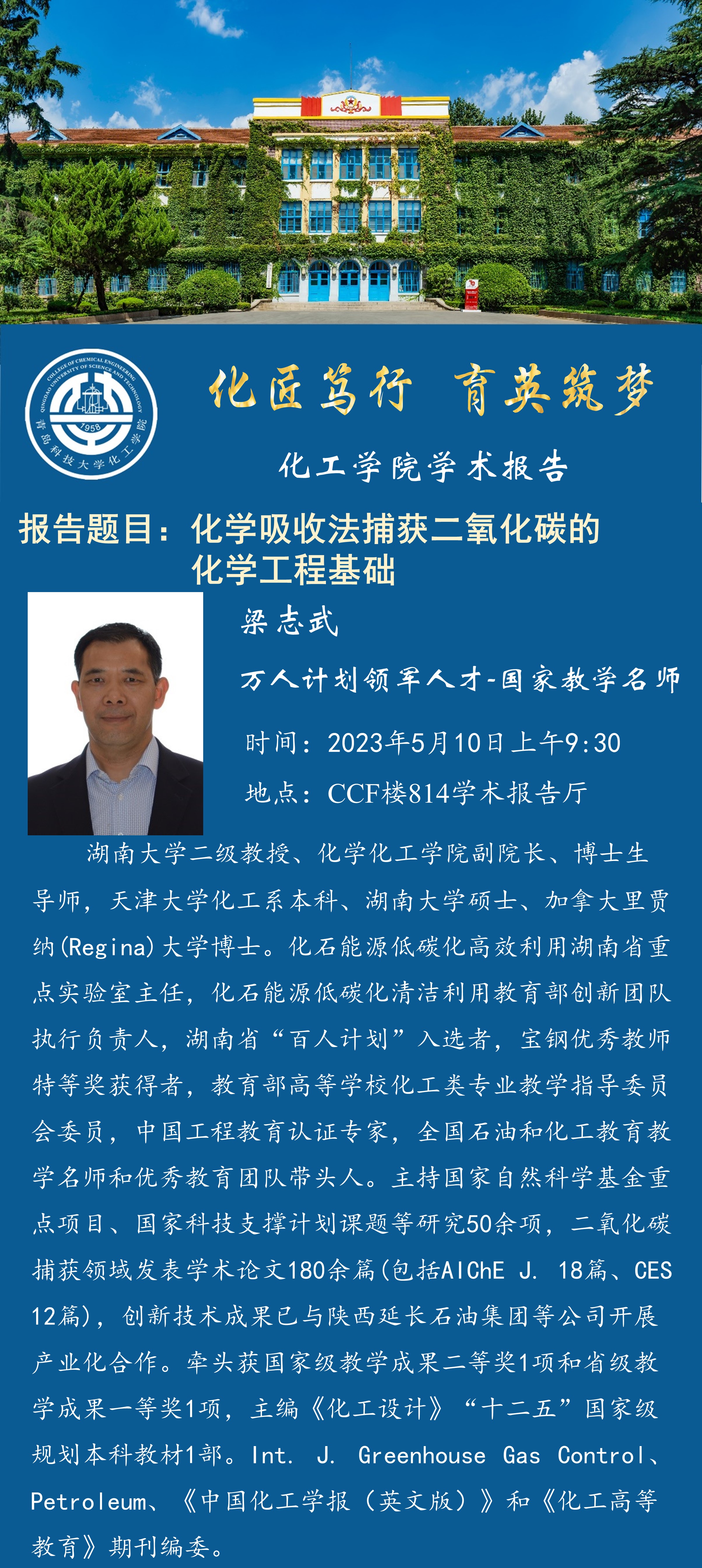 英国365集团学术报告——梁志武:化学吸收法捕获二氧化碳的化学工程基础