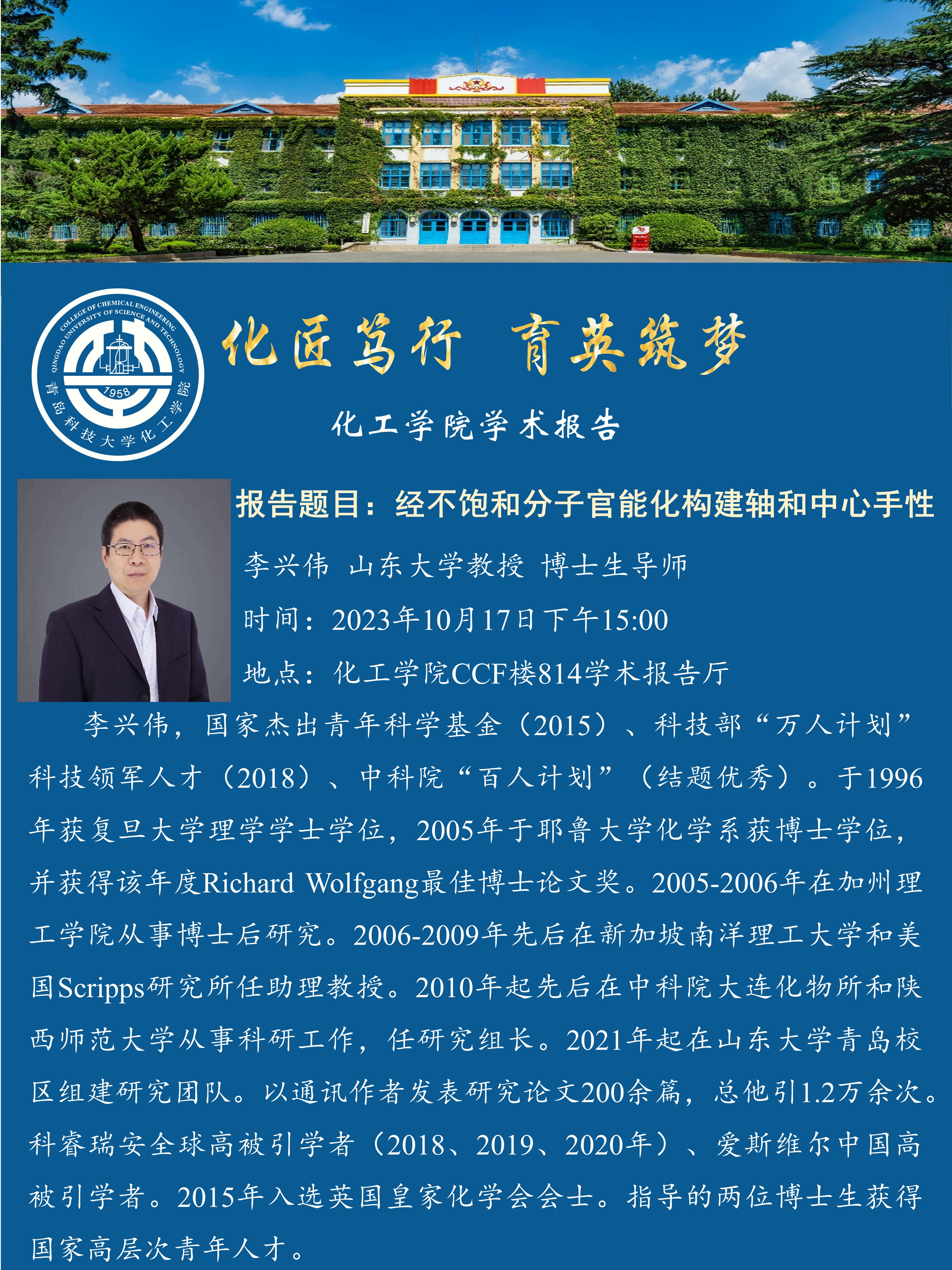 英国365集团学术报告——李兴伟:经不饱和分子官能化构建轴和中心手性