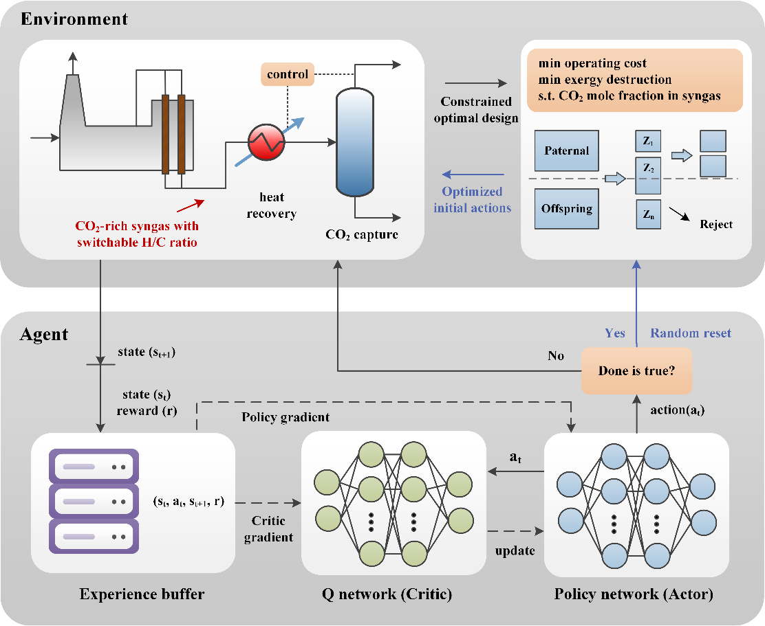 图1随机合成气切换下游(SSSD)过程经济—㶲(2E)管理的Po-SAC预优化强化学习控制框架