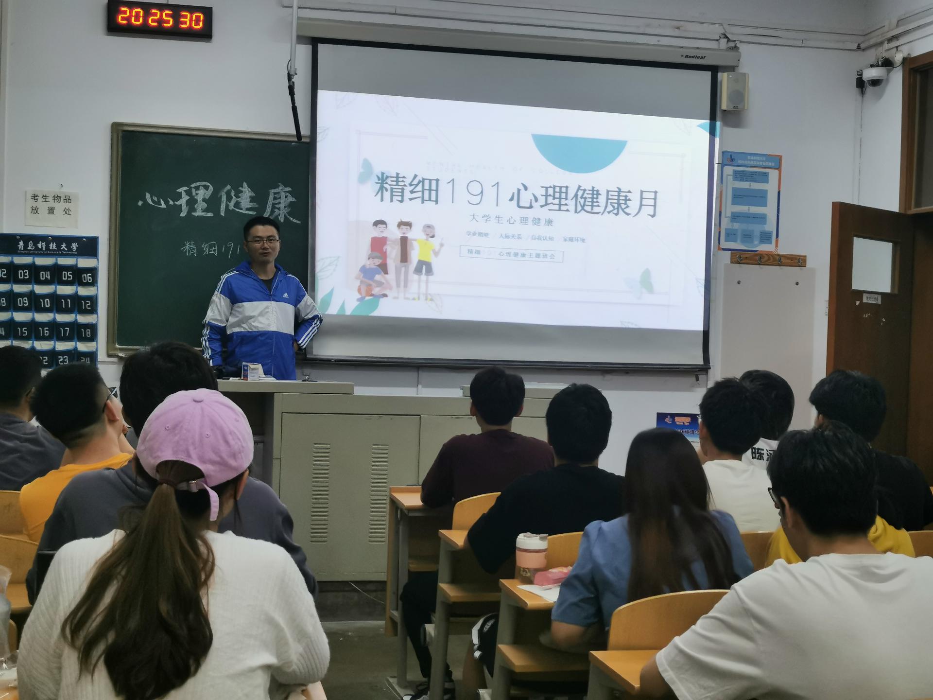 为普及心理健康知识,使员工树立全面的健康观,建立预防为主、自我防护的意识,9月29日晚20:20,精细191班在第二教学楼304教室举办“心理健康月”主题班会。班会由班主任张超主持。班级30人全部参加。