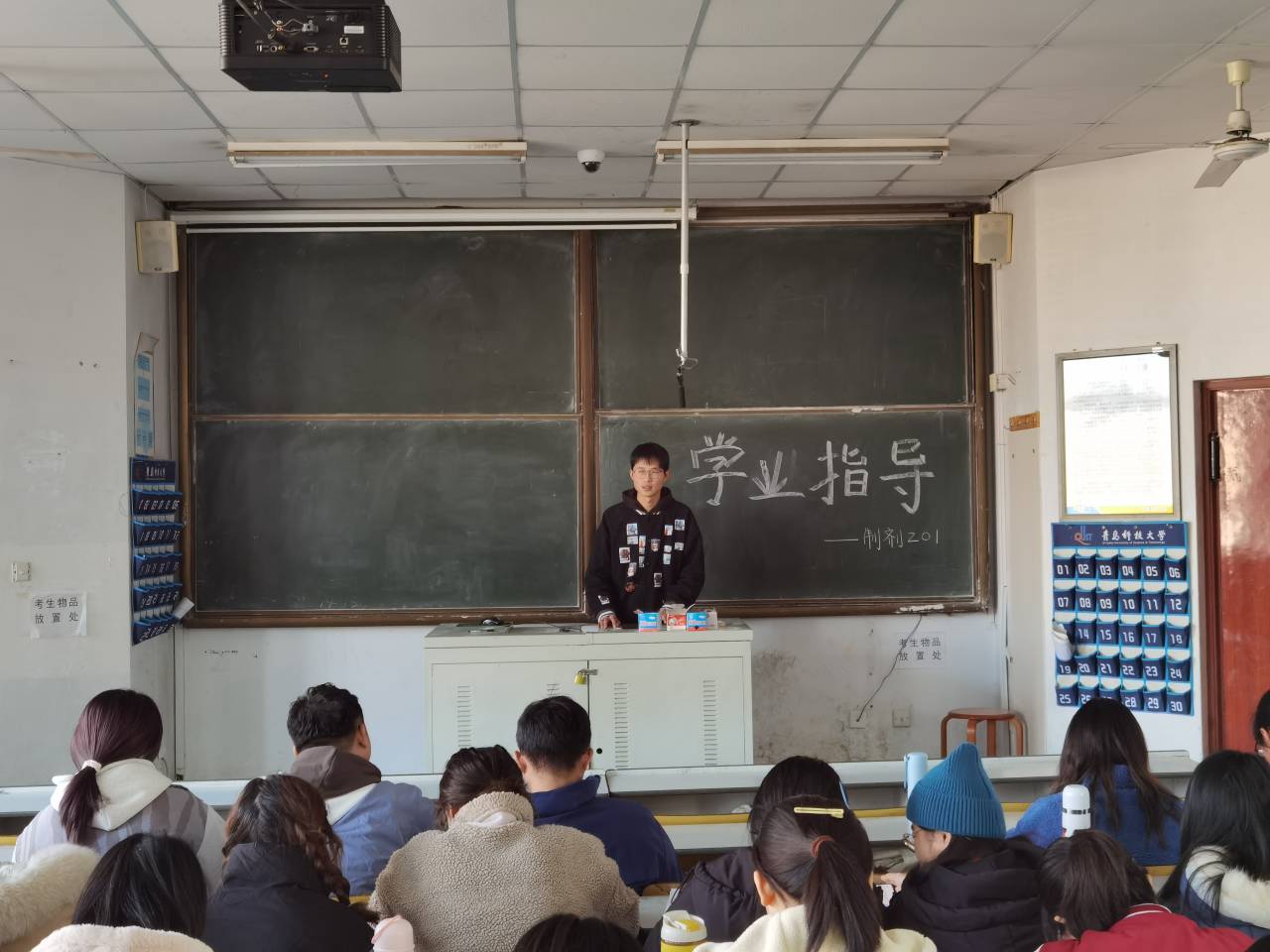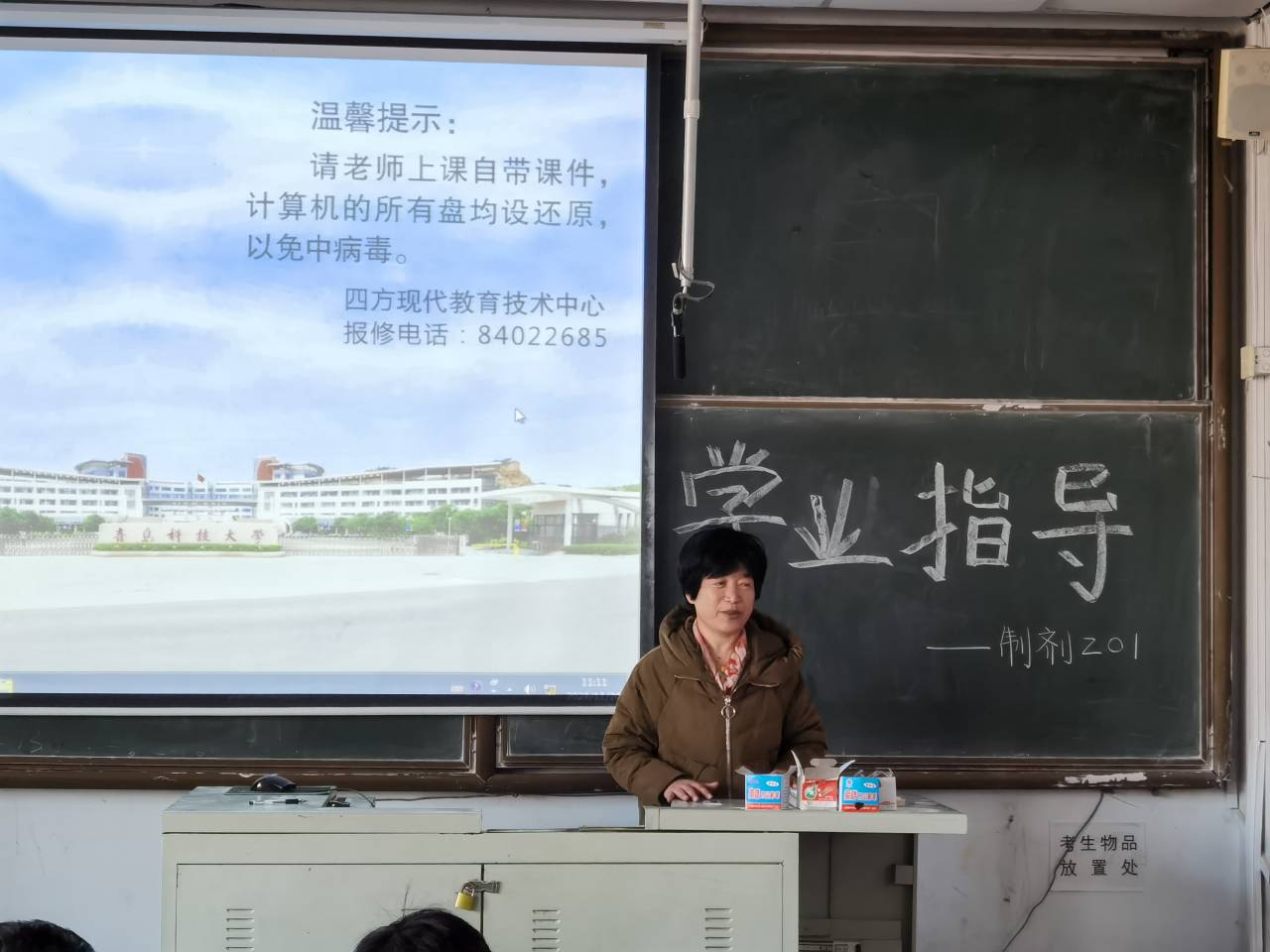2021年11月24日上午11点,英国365集团药物制剂201班全体同学在第一教学楼302教室举行了“学业指导”主题班会。本次班会由班主任赵文英老师主持,以“做好考前复习,诚信应对考试”为主题,赵文英向同学们讲解了考前复习及笔记的重要性,多名同学分享了自己的复习方法。此次班会对同学们进行了充分的学习动员,提高了同学们的学习意识。