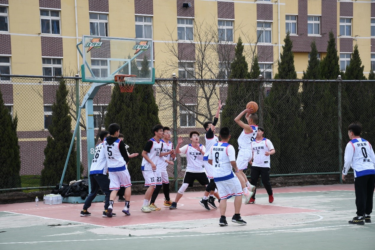 比赛伊始队员们就迅速投入了比赛。队员们一个个都精神抖擞,雄姿英发。在比赛时双方都毫不示弱,竭尽全力为自己所在的队伍赢得佳绩。早春的寒意没有阻挡队员们对比赛的热情,队员之间配合默契,投球的动作潇洒利索。队员们在球进篮筐时激情的欢呼,在球险而未进时的不放弃精神彰显了运动健儿的精神风貌。队员们肆意挥洒着汗水,用球场上一个个跃动的身影,流畅的步伐,绽放着属于自己的青春之花。