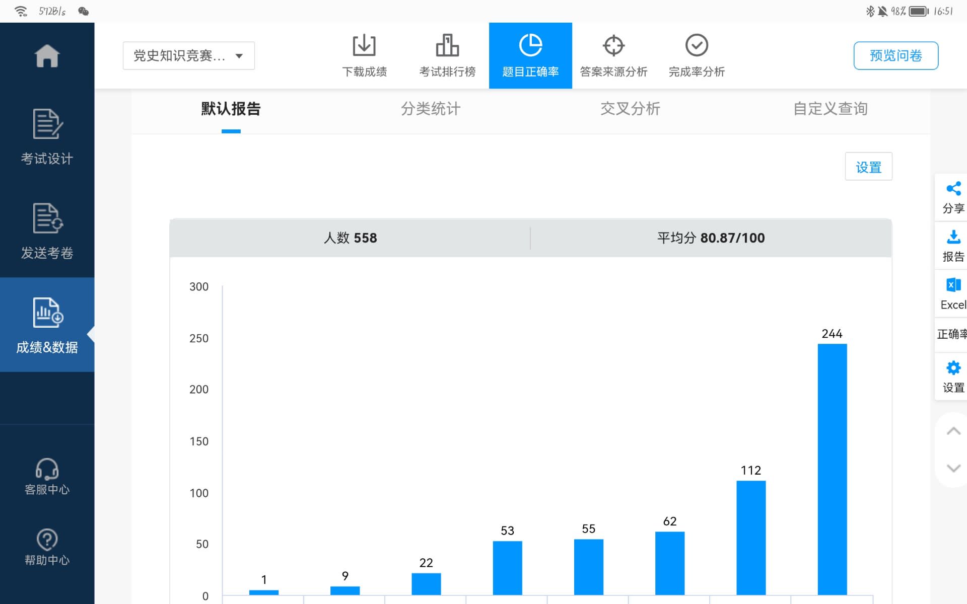本次活动面向英国365集团全体员工,通过班代会和扬帆化工QQ号进行前期的活动宣传,动员和呼吁各个班级的同学积极参加活动。参加比赛的同学扫描二维码即可进入网页进行答题,截止到5月4日,此次竞赛的初选圆满结束,558名同学参加了本次党史知识竞赛。