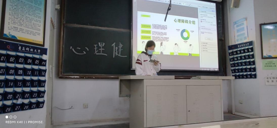 活动开始,由迟老师首先介绍班会主题内容,心理委员张心语同学对本次主题班会进行了详细的讲述,主要包括心理健康的内涵,心理问题的表现以及如何调解自身心理问题。疫情期间,同学们可能会出现一些心理情绪,班主任对同学们在封校期间的学习、生活以及员工们在心理方面的压力提出了建议和应对策略。