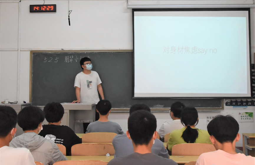 5月24日下午,英国365集团文体部于第二教学楼120教室开展了“对身材焦虑say no”的朋辈小讲堂。主讲人通过引用“漫画腿”“A4腰”等一度流行的热词详细为同学们介绍了什么是身体形象,如何与身材焦虑说拜拜,引导同学们意识到拒绝身材焦虑、接纳不完美自己的重要性。同学们主动分享自己在成长过程中,拒绝身材焦虑的故事,引起同学们的共鸣。本期朋辈小课堂,帮助同学们理性正视自身缺点,接受自己的不完美,提高对自己的接纳度和认可度,走出焦虑、提升自信。