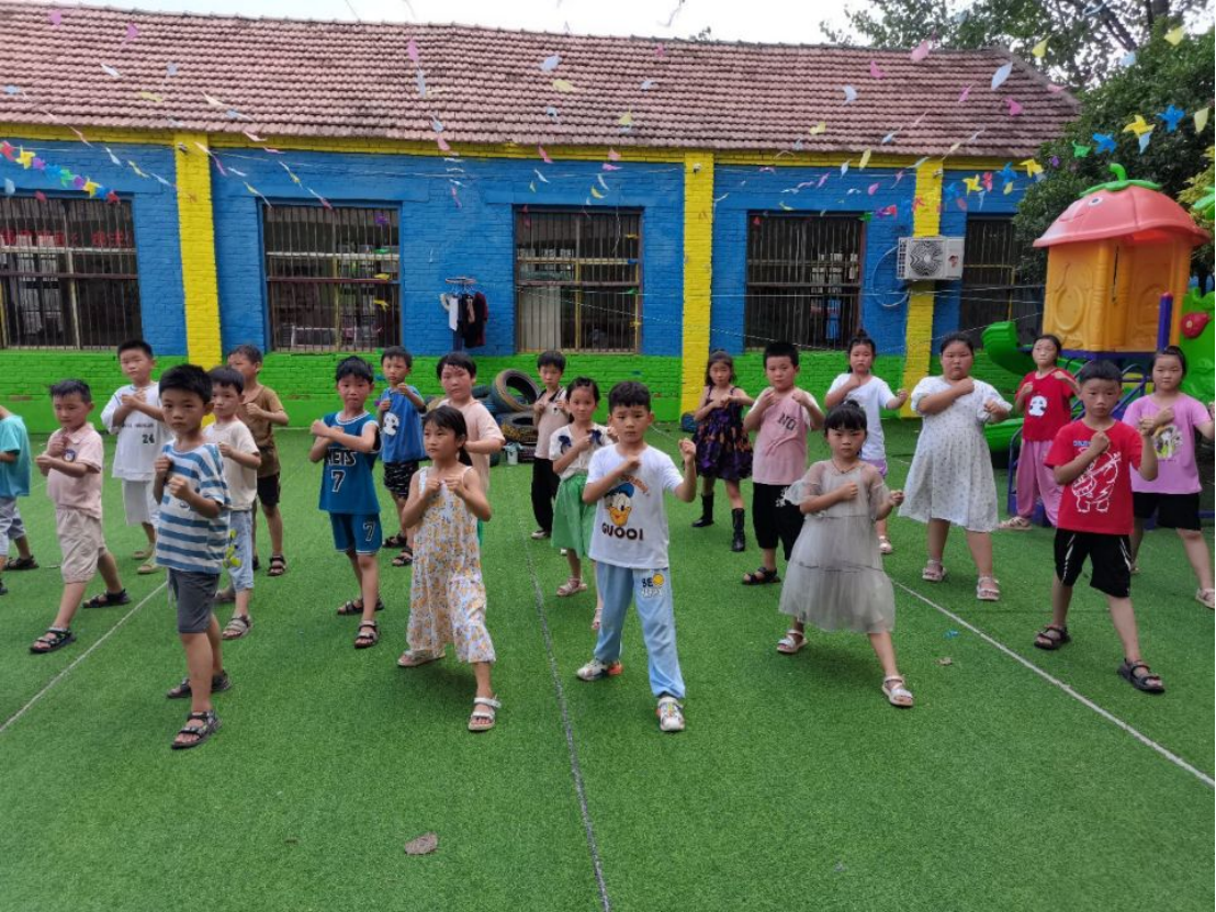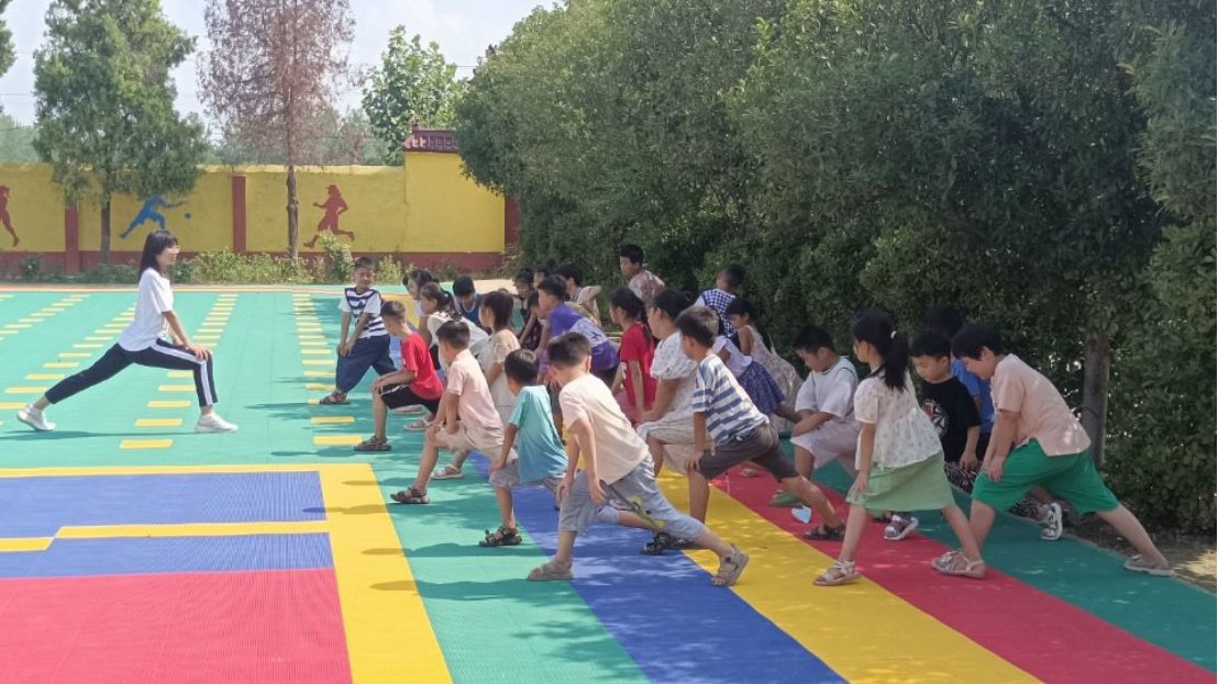 7月15日团队成员为孩子们展开体育健康阶段的教育,主要以广播体操以及跆拳道等形式帮助员工们进行体育锻炼。