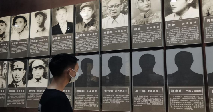 随后团队成员进入到二楼大厅中,这里介绍了烈士们的生平事迹,他们在战争中都有着不怕流血,不怕牺牲的精神,其中一个房间中刻满了英雄们的名字,三维画面的战时实景记录着先辈们在枪林弹雨中誓死保家卫国的身影。看着眼前活灵活现的战士身影,每一个手持钢枪的战士都有着视死如归的眼神,眼睛里的杀气犹如刀口直逼敌人退去,这不禁让成员们感受到了战争的冷酷无情。八天八夜的浴血奋斗,五千英烈血染泉城,最终换来了济南战役的胜利,在这一刻成员们心中充满了对英雄最崇高的敬意。