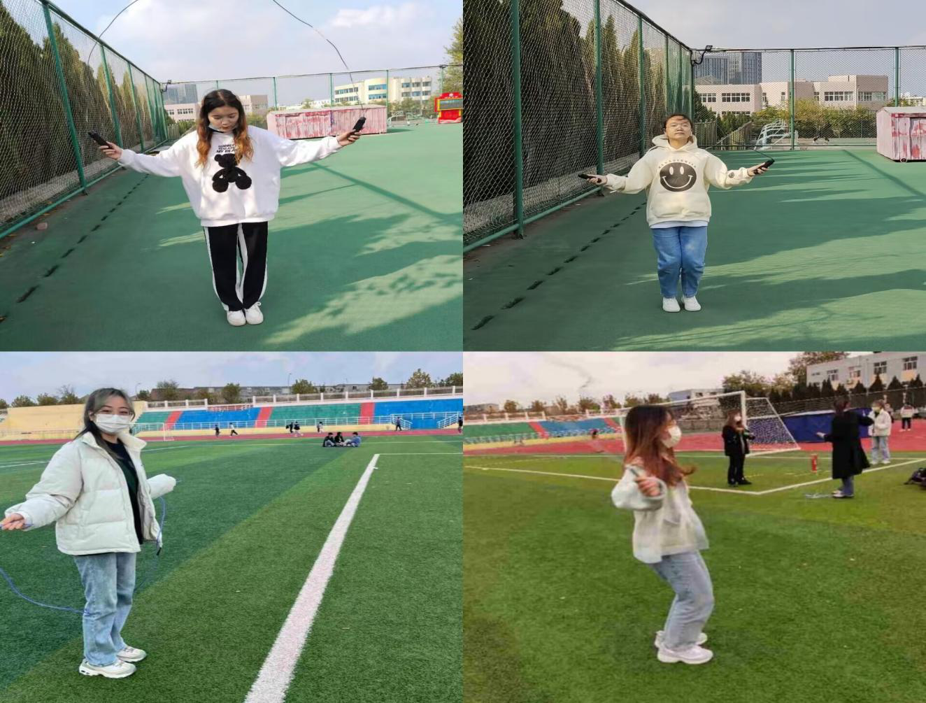 疫情虽未止,运动永不停。本次线上打卡活动共有两种方式:一是在“天天跳绳”APP上每日进行200个跳绳打卡,二是在“爱体育”APP上每日进行1.5公里跑步打卡。同学们可选择个人参加或宿舍成员集体参加,最终将APP截图和个人运动照片上传到打卡程序。疫情虽然阻挡了同学们外出的脚步,但并未磨灭同学们对运动的热情。同学们积极参与打卡活动,无论是清晨还是夜晚,足球场还是跑道,一道道奔跑的身影,一根根舞动的跳绳,一张张明媚的笑脸,无不洋溢着同学们对运动的热情,展示着青春的活力。