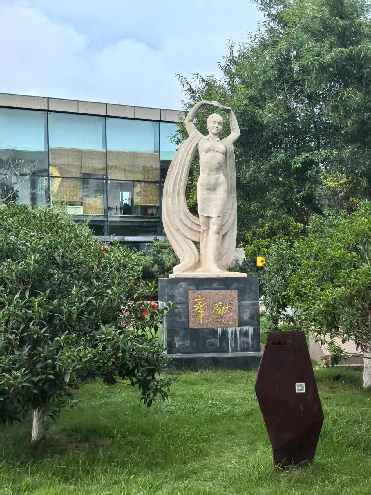 青岛纺织博物馆坐落于曾经的青岛国棉五厂旧址,这片占地近3万平方米的园区,完整保留了从1902年至20世纪90年代的纺织工业建筑群,被誉为“青岛纺织工业的活化石”。实践队刚踏入博物馆大门,便被眼前一座高约5米的主题雕塑吸引——雕塑以数百个齿轮、纱锭和织布梭为原料,通过螺旋上升的造型,巧妙还原了青岛纺织从手工纺纱到机械织布的发展历程。“你看这些齿轮的咬合角度,完全复刻了1920年代德国进口纺织机的传动结构。”带队老师指着雕塑细节向队员们介绍,“每一个零件都承载着真实的工业记忆。”