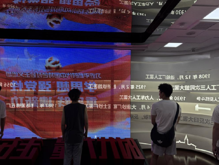 上午,实践团首站抵达位于市南区香港西路33号的青岛工人运动纪念馆。这座坐落于八大关近代建筑群的红色教育基地,通过3万余字史料、300余幅历史图片及沉浸式多媒体展陈,生动再现了青岛工人阶级在中国共产党领导下推翻反动势力、争取民族解放的峥嵘岁月。队员们驻足于“五四运动与青岛工人觉醒”“反帝反封建斗争浪潮”“新中国成立后的工人先锋力量”等主题展区,凝视着泛黄的工运传单、锈迹斑斑的劳动工具、先烈的手写信件,深刻感受到百年工运中“敢为人先、不屈不挠”的斗争精神。在互动式“工运历史答题区”,队员们通过沉浸答题重温关键历史事件,进一步理解了工人阶级作为“时代先锋”的使命担当。