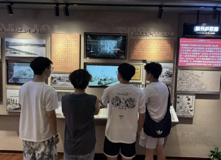 午后,实践团来到中国人民解放军海军特勤疗养中心。在军史文化长廊,队员们系统学习了人民海军从“白马庙建军”到现代化深蓝铁骑的发展历程。陈列的珍贵史料中,有新中国成立初期海军官兵手绘的海防地图、海军建军70周年阅兵时的装备模型,以及反映海军特勤部队执行远洋护航、抢险救灾任务的纪实照片。工作人员动情讲述海军特勤官兵“向海图强、卫我海疆”的感人事迹,让队员们深刻体会到“强国必须强军,军强才能国安”的深刻内涵。参观中,队员王佳乐表示:“看到老一辈海军在简陋条件下仍以热血捍卫海权,我们更坚定了投身科技报国的决心。”