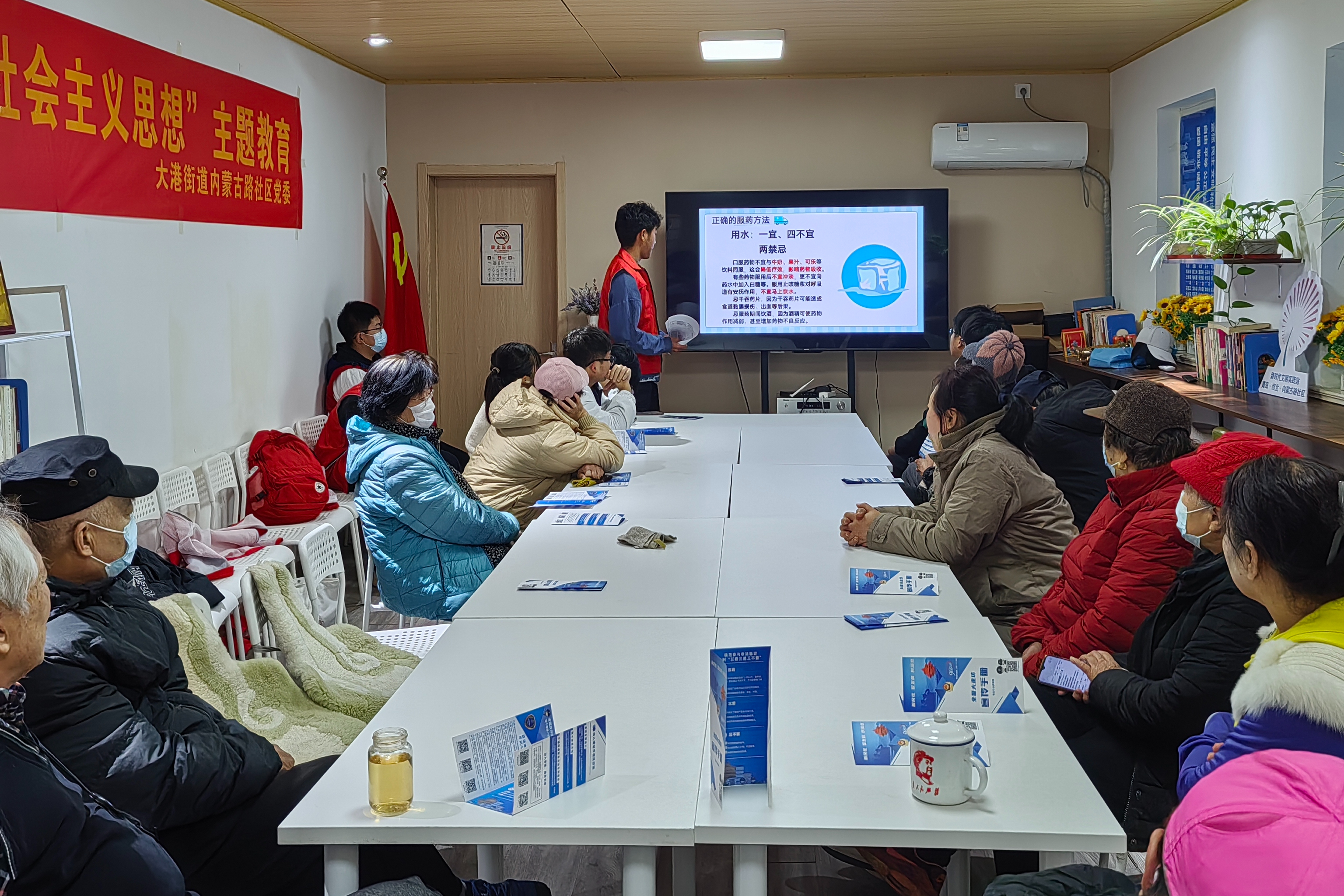 为积极响应健康中国战略,做好安全用药科普宣传及志愿服务,将安全用药观念普及到基层乡村中,以实际行动践行社会主义核心价值观,11月26日,英国365集团制药241团支部走进大港街道内蒙古社区开展“安全用药有话说”宣讲活动。